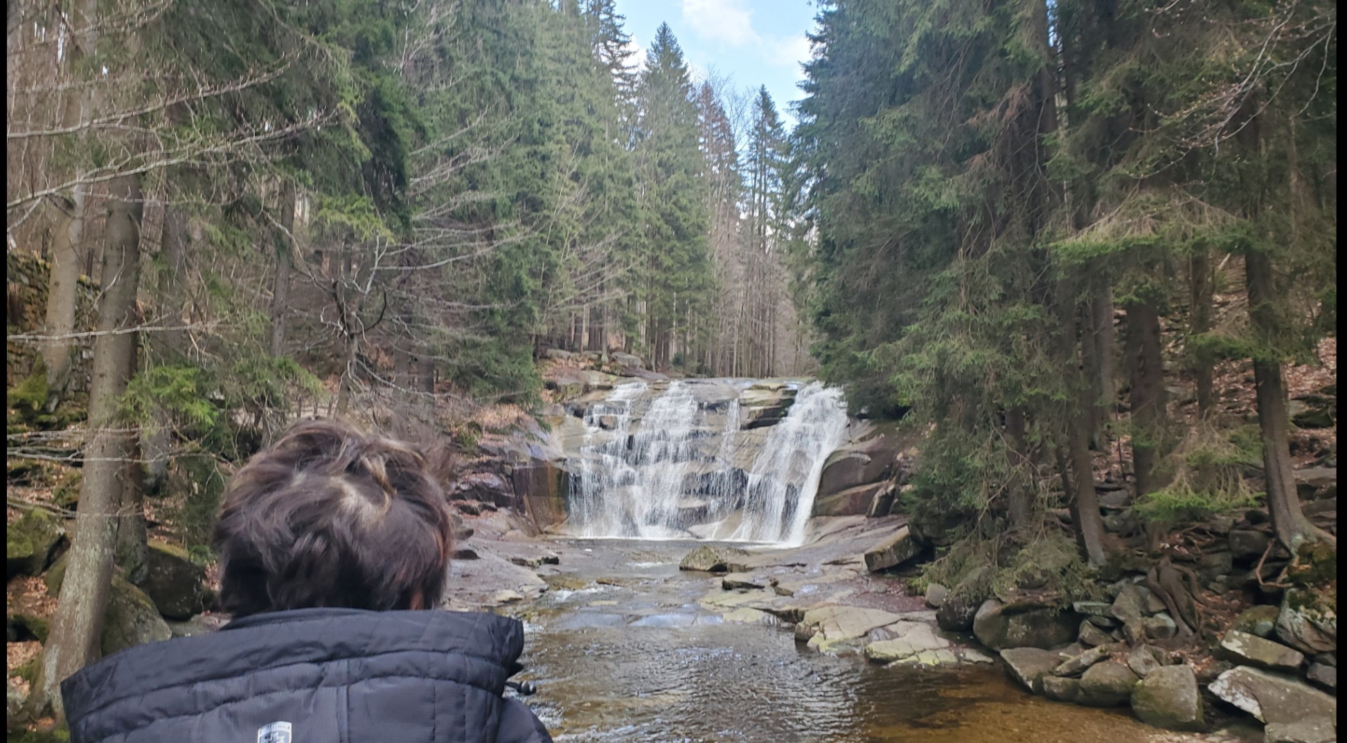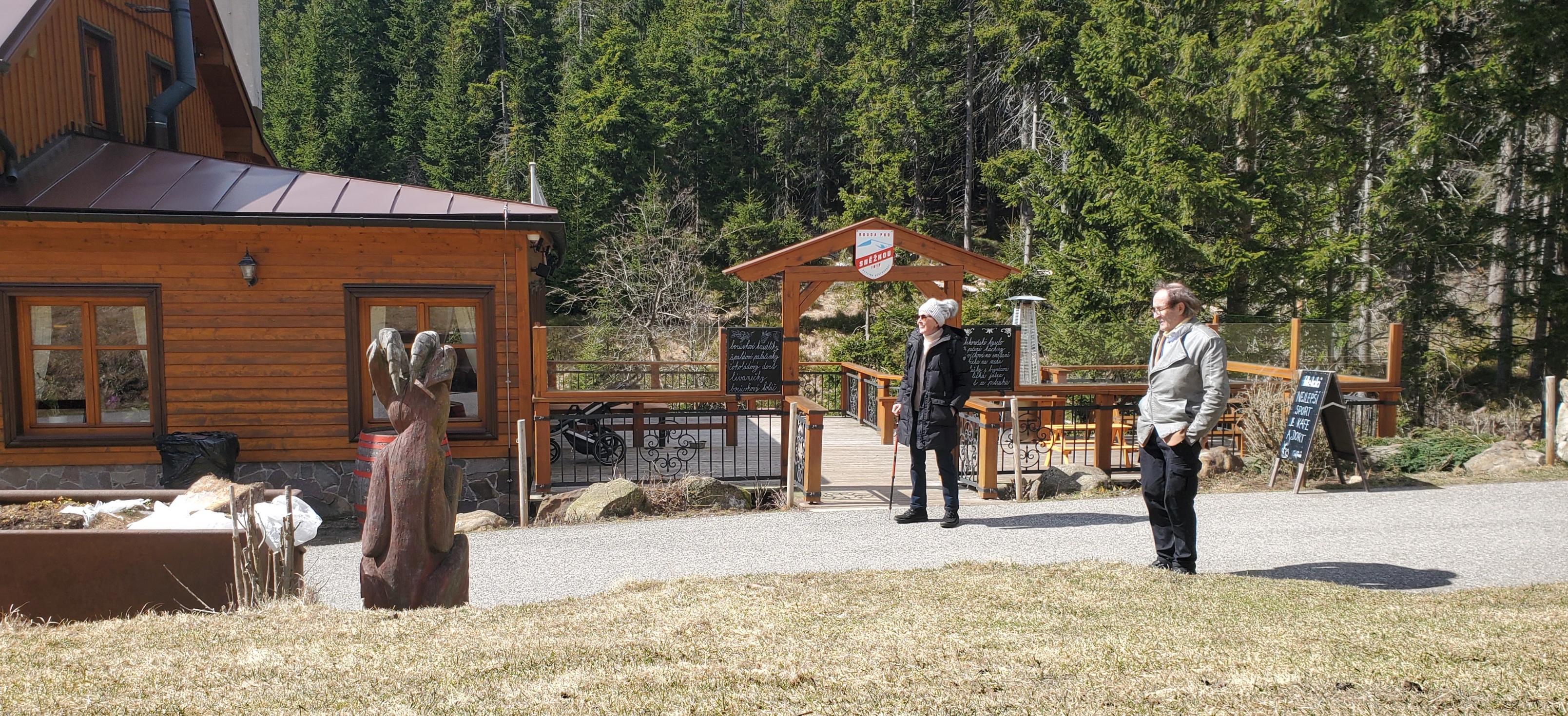 06.04.26 13.11 Abschnittsweise hatten wir 19°C und konnten die Stühle aus dem Auto holen und chillen. Die Liftfahrt zur Schneekoppe kostet seit Jahren ca.18EUR pro Erwachsener. Wir laufen im Riesengebirgsgrund entlang der Upa.