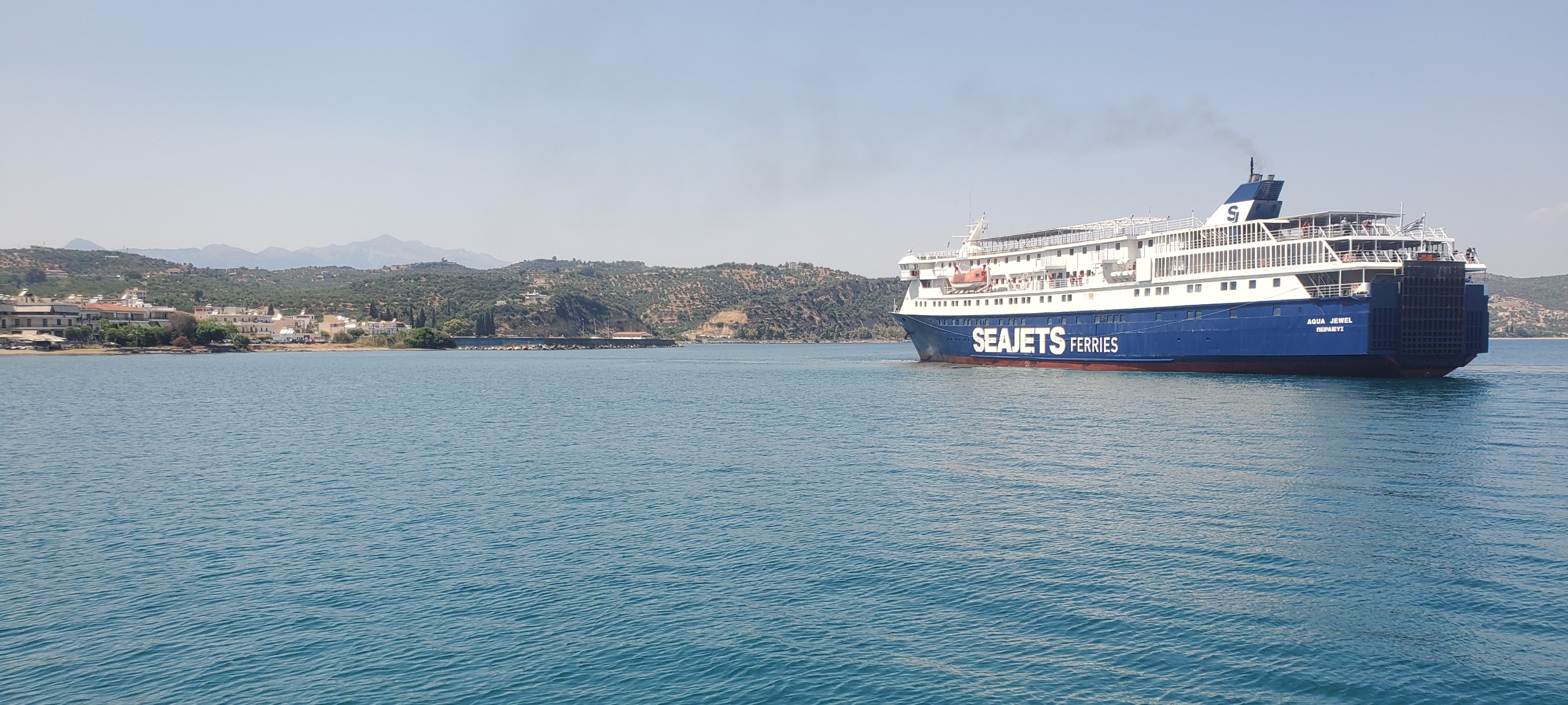 18.08.25 11.50 Bei ungewohnt angenehmen Klima halten wir wieder ein letztes Mal am Golf von Korinth um bei nur 27°C und 5Kn Westwind zu baden. Unser Schiff Akka (Lübeck) wartet auf uns im Hafen. Das Schiff wurde wegen schlechter Auftragslage zwischen S und D an Superfast verliehen - lese ich gerade.