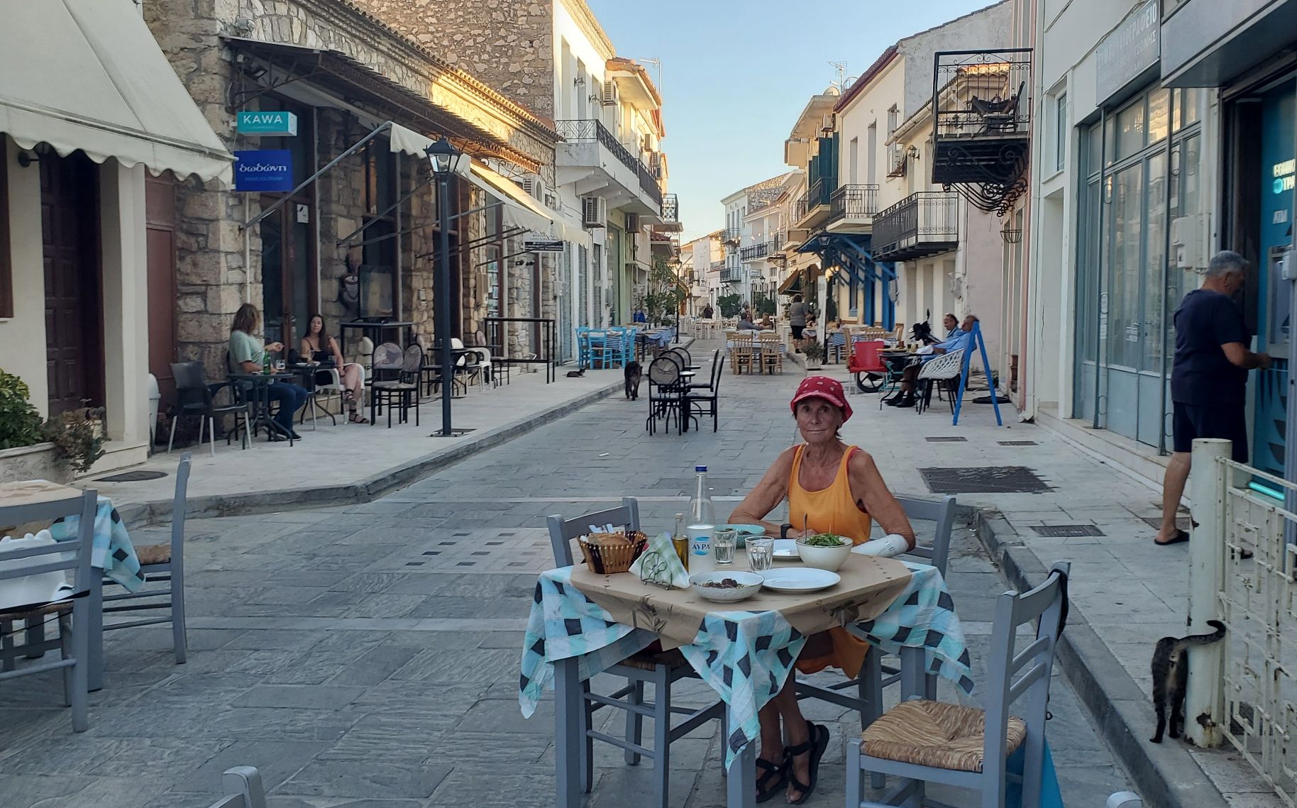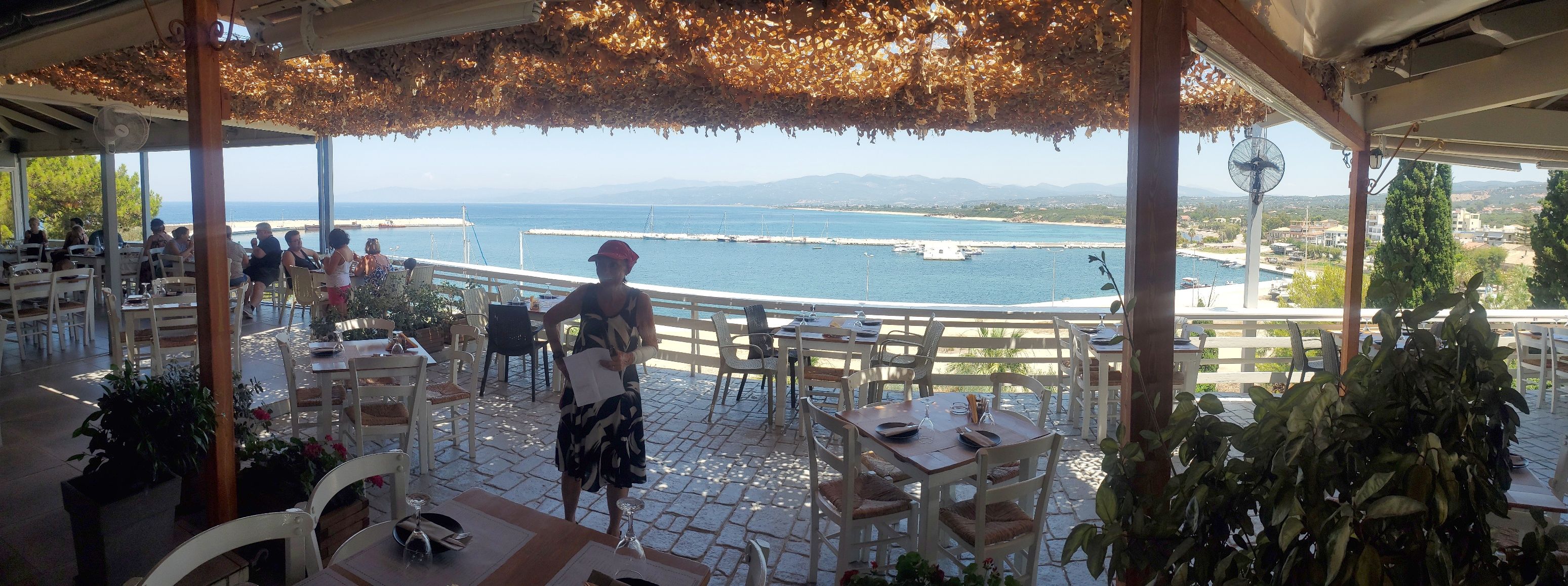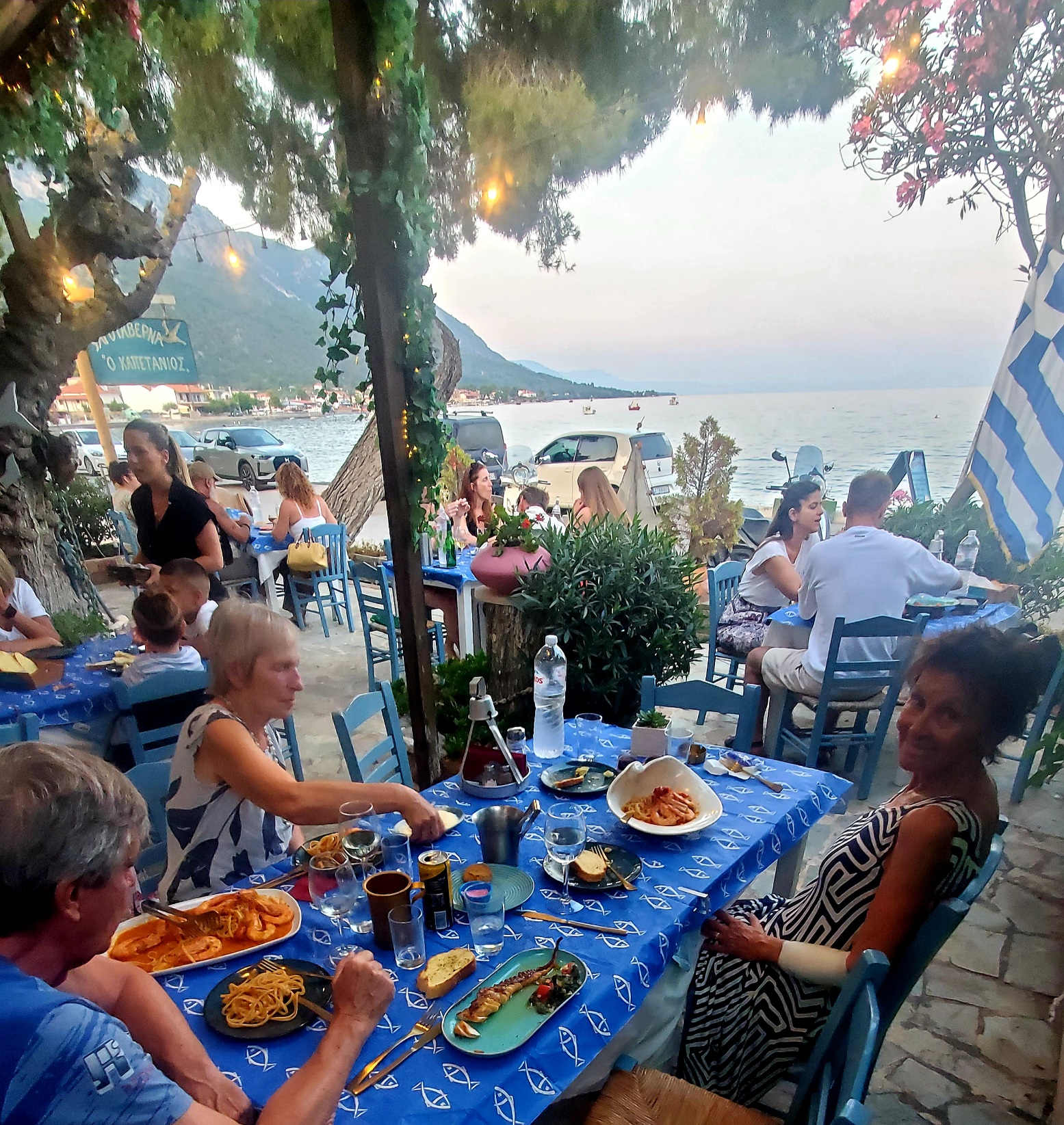 05.08.25 19.51 Sitzen himmlich in der Boggi Taverne in Goudouras.
