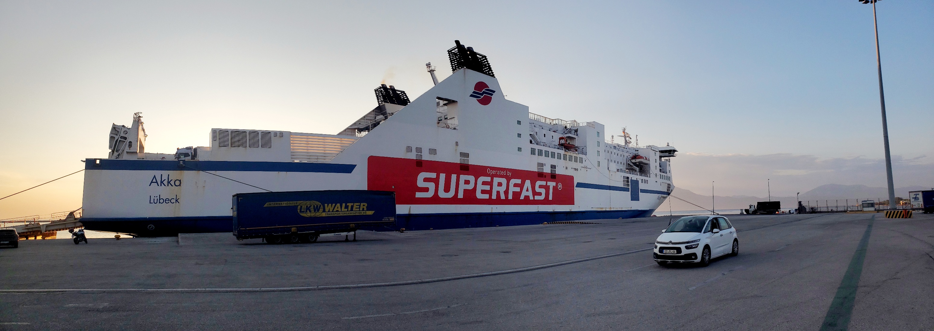 18.08.25 19.30 Wir sind noch nie so perfekt wie hier empfangen worden. Kabinen haben alle Aussenfenster. Es gibt Cinema , Sauna und Kids_Corner an Bord aber EU Preise in den Bars. Die Anzahl der Passagiere entsprechen in etwa dem Niveau von 2020 aber viel weniger LKW.Brandschadenauswirkungen sehen wir in der fast leeren Stadt nur wenig. 30min vor Abfahrt sieht unsere Embarkation so Mutterseelenallein (in Griechenland) gelassen aus . Fazit: 2025 waren in GR Touristen aus D kaum wahrnehmbar dafuer jede Menge Einheimische.