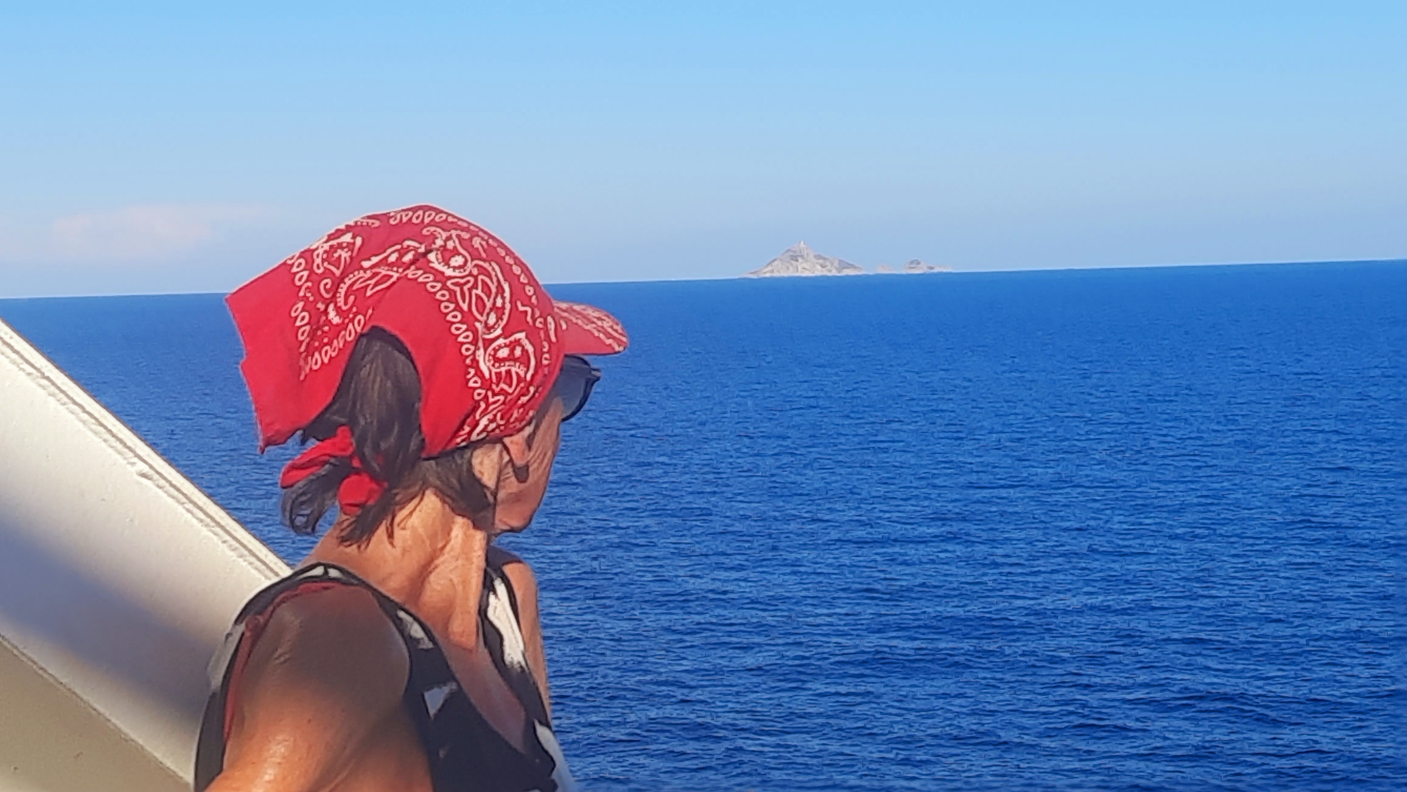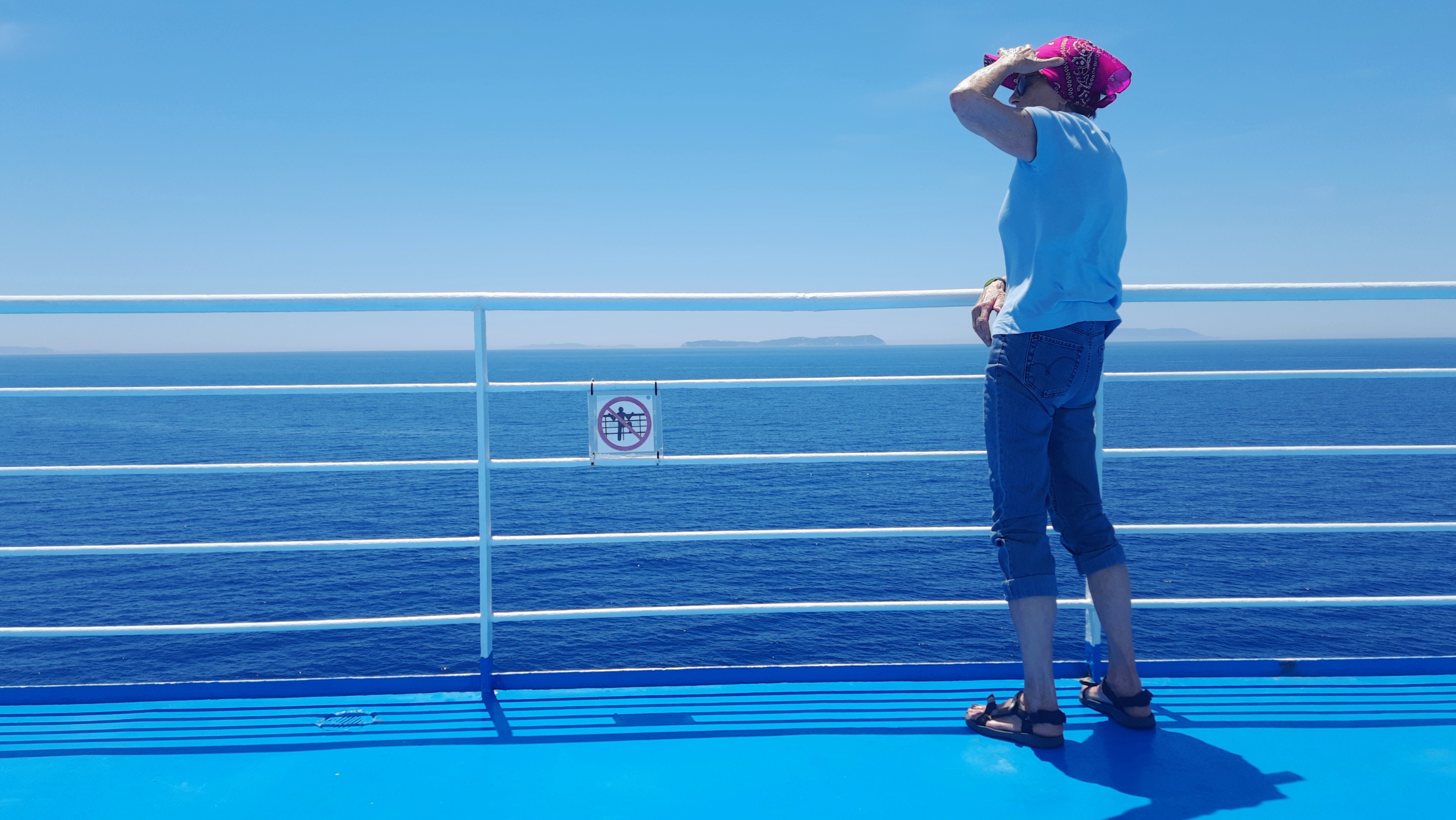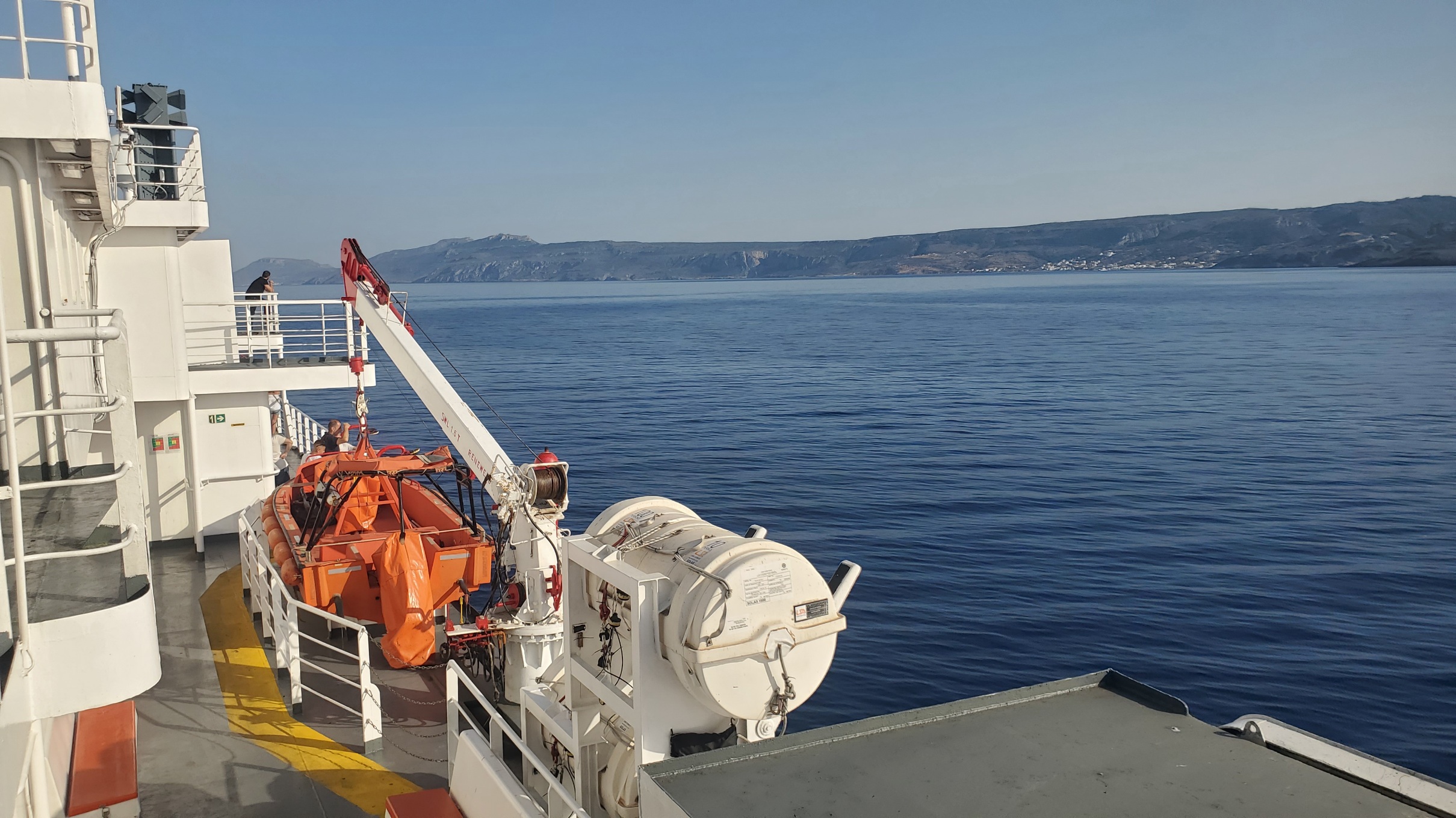 02.06.25 13.23 Eine ganz ruhige Nacht lie6gt hinter uns - wir sehen ionische Inseln. 26°C , Sonne, kaum Wind. Vor dem Urlaub zu früh, um wie Passagier 23 über Bord zu gehen. 🌵
