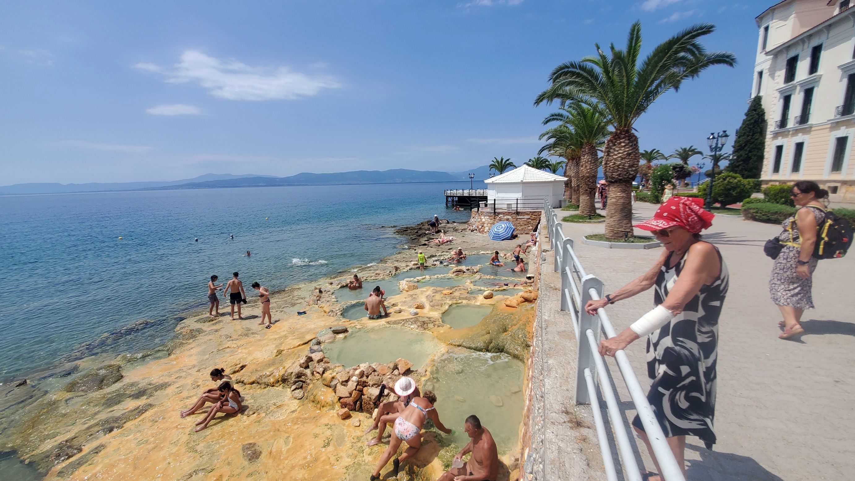 19.06.25 08.06 Die Anbindung von Ag.Georgios-Lichada per Fähre an das Festland hat den einst am Ende der Insel Euböa gelegen Ort am ( Nord-Euböische Golf) aus seinem Dornrörschenschlaf erweckt und in einen lebendigen Touristenort verwandet. 🐬🐬🐬
