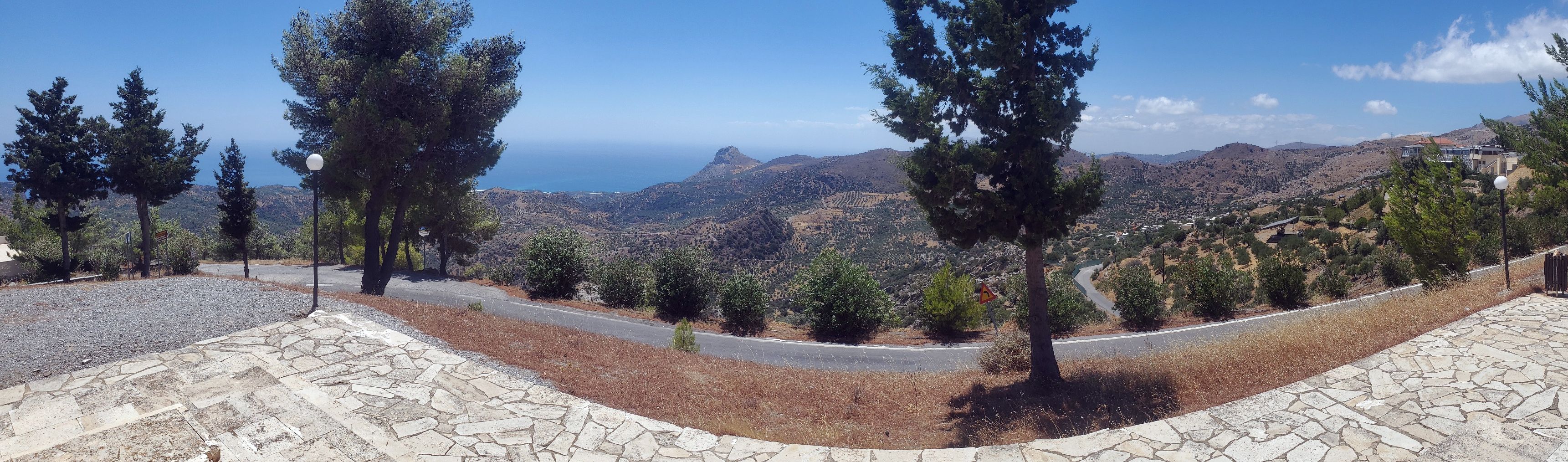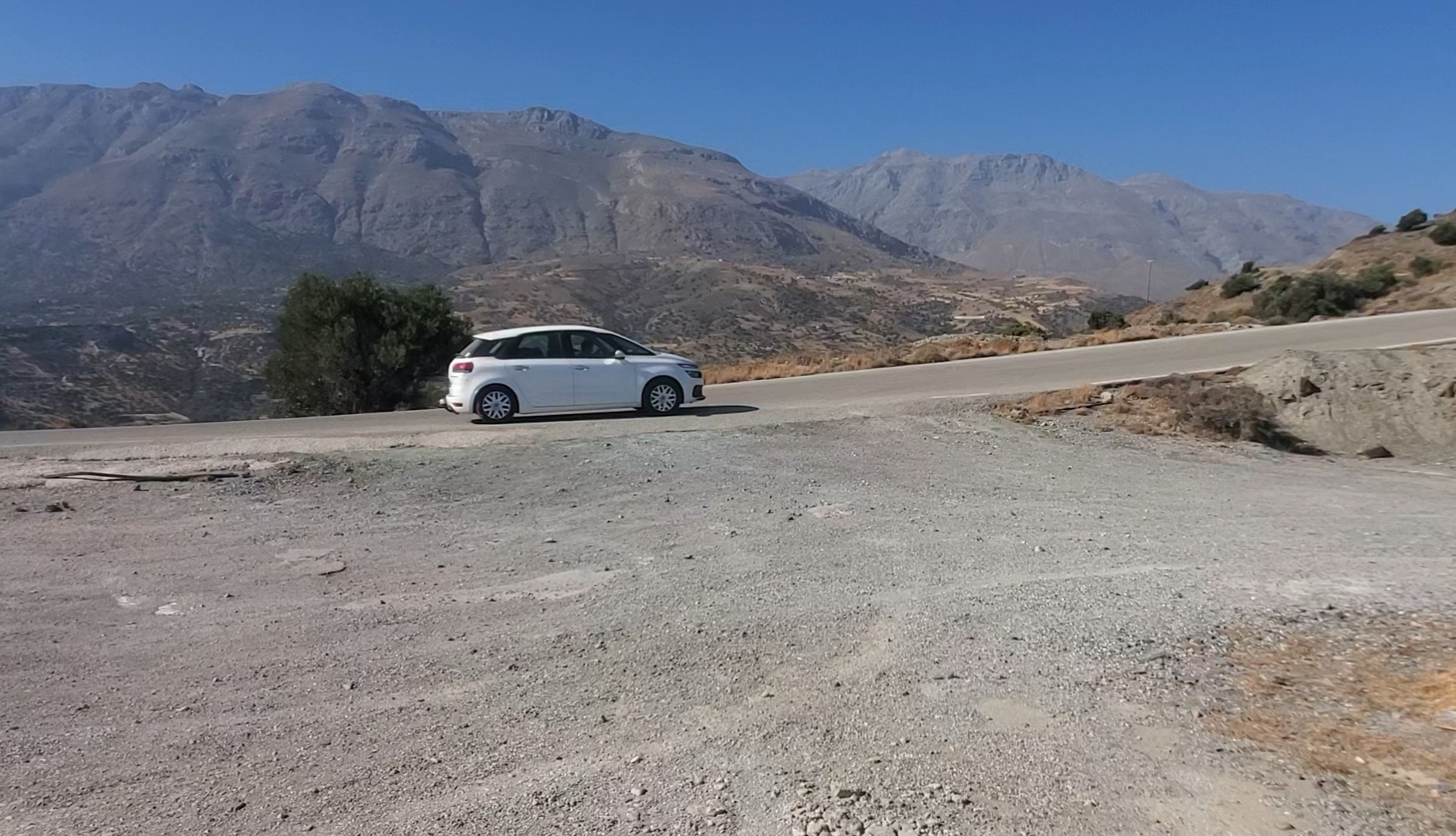 01.08.25 14.05 Entlang der bergischen Suedseite des Dikti Gebirges mit dem hoechsten Berg Spathi durch jedes Dorf ueber den zugigen Pass zunaechst bis Myrtos.