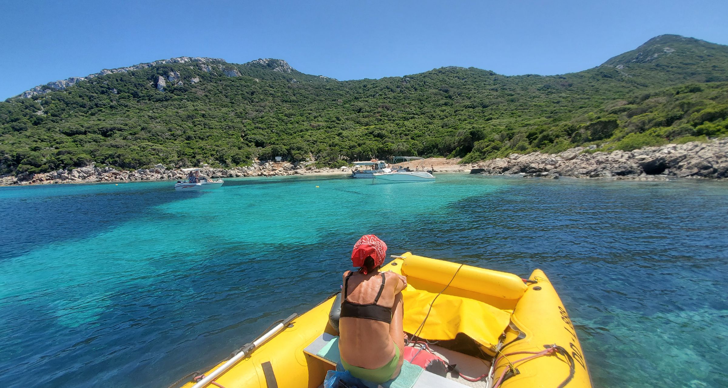 12.08.25 20.08 Bei 30°C aber kaum Wind besuchen wir unsere versteckten Buchten, die von Land kaum zu erreichen sind.