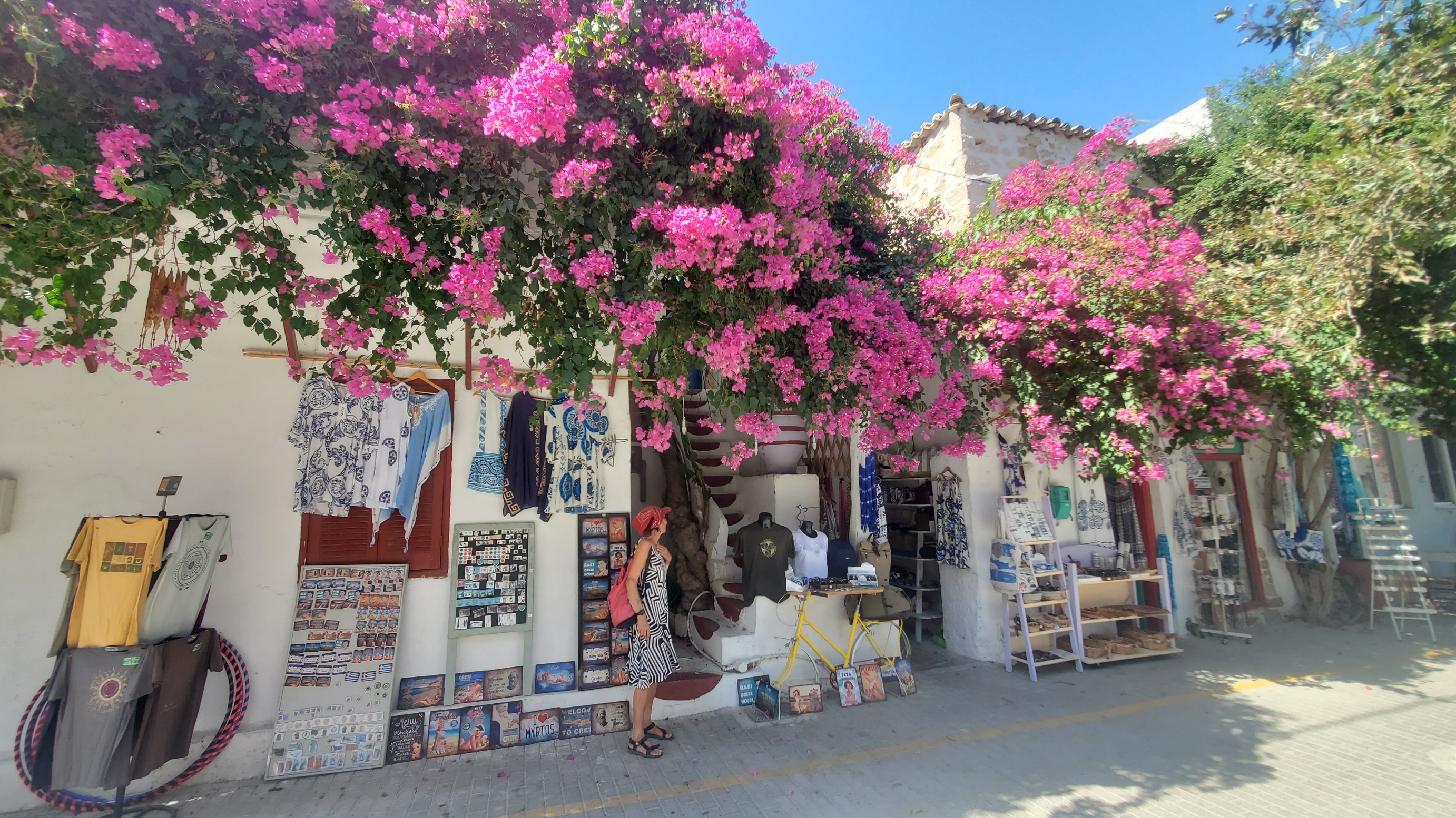 17.06.25 08.17 Wir sprechen mit dem Vermieter. Das schöne fast leere Ag.Georgios war noch bis vor 5Jahren von Mai bis Oktober völlig überlaufen. Uns begegnen nur 2Touribusse mit blaugelbem Landesschild. 🌴🌵