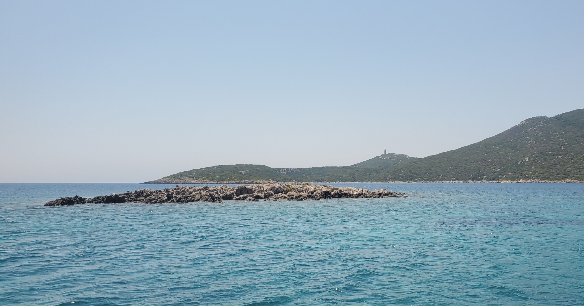 19.08.25 18.12 Gerade passieren wir diese zu Kroatien gehörende unbewohnte Inselgruppe (Vela Palagruža) Lese gerade im Leuchtturm werden Zimmer an Touristen vermietet.